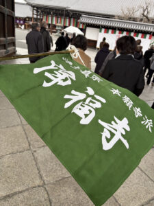 1月の本堂はとても寒く、吐く息も白くなるほどでしたが、その静けさ・荘飯な中で、法要が勤まりました。当日は多くの楽人さんや僧侶が出勤し、広い本堂いっぱいに読経の声や楽の音色が響き、非常に迫力のあるお勤めでした。連日インターネットでの中継もされていましたが、この場にいないと伝わってこない臨場感を感じることができました。